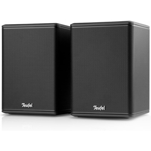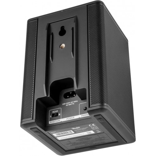 - Con efecto 2 como un par de altavoces traseros activos, se controlan de forma inalámbrica por radio, se pueden montar sobre soporte o en la pared, alcances de hasta 15 m, función de encendido y apagado automático, sistema de 2 vías para un sonido envolvente realista