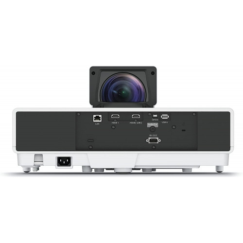 Tiene tres entradas HDMI, altavoces incorporados de 10 W y espacio para almacenar un dispositivo de transmisión en un compartimento frontal oculto. Controla el proyector mediante el mando a distancia incluido o la aplicación iProjection.