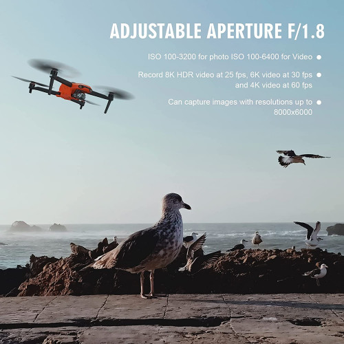 EVO II Quadcopter viene con apertura fija f/1.8 que captura más luz en condiciones de poca luz para producir imágenes y vídeos con detalles impresionantes.