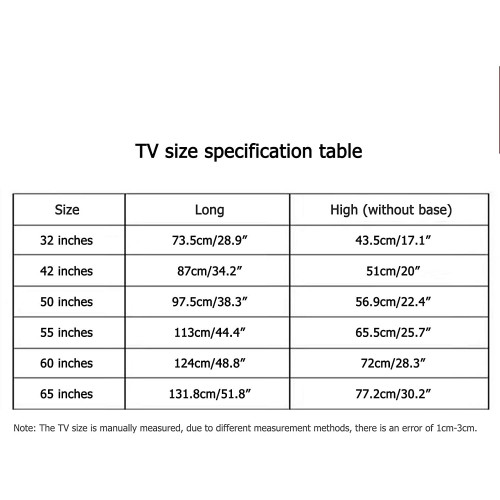 Tamaño de pantalla: 32 pulgadas, 42 pulgadas, 50 pulgadas, 55 pulgadas, 60 pulgadas 4K, 65 pulgadas 4K