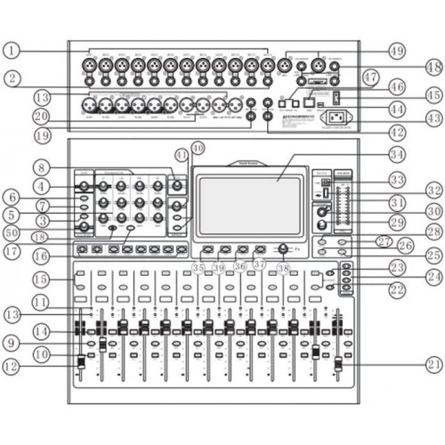 Entrada de micrófono / línea: entrada 1-12 equilibrio, y la sensibilidad de entrada XLR jack (XLR / TRS): -60 ~ + 10 dB / -50 ~ + 20dB