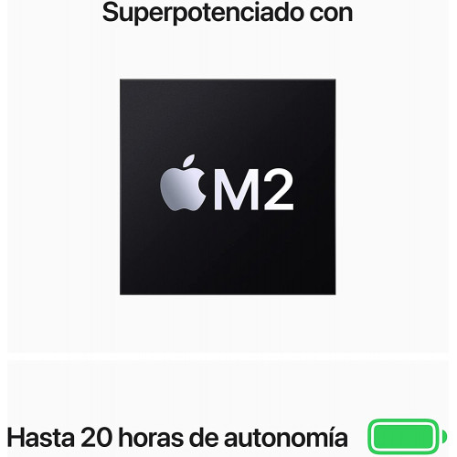 - HASTA 20 HORAS DE AUTONOMÍA – Gracias a la impresionante eficiencia del chip M2 de Apple, tienes batería de sobra para exprimir el día y mucha noche.1