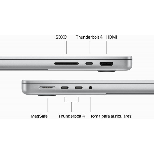 MagSafe, tres puertos Thunderbolt 4, ranura para tarjetas SDXC, puerto