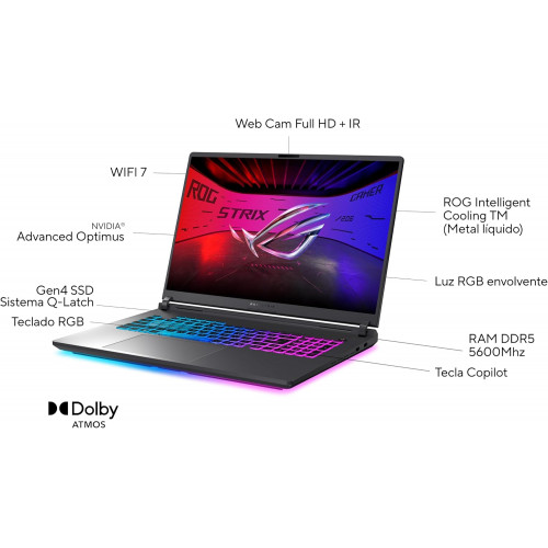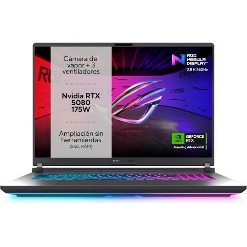 ASUS ROG Strix G18 G815LW-S9046 - Portátil Gaming de 18" WQXGA 240Hz (Core Ultra 9 275HX, 32GB RAM, 1TB SSD, NVIDIA GeForce RTX 5080 16GB, Sin Sistema Operativo) Gris Eclipse - Teclado QWERTY españo.