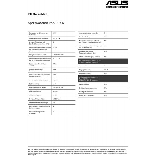 - Código de Producto: ASUS PA27UCX-K - Monitor de 27'' 4K