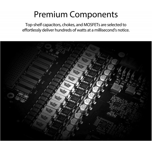 • Super Alloy Power II incluye chokes de aleación de primera calidad, condensadores de polímero sólido y una serie de etapas de potencia de alta corriente.