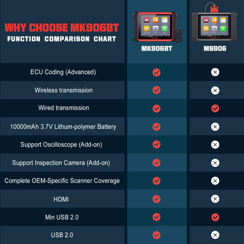 ????【DIAGNÓSTICO DE TODOS LOS SISTEMAS】MK906BT con cobertura de vehículos de 80+ en EE. UU., UE y Asia, y con un rango de conexión inalámbrica BT de 50M de gran alcance, accede a todos los sistemas electrónicos de los automóviles de forma automática o manual para ayudar en gran medida a los mecánicos a encontrar los problemas de los automóviles y obtener más negocios